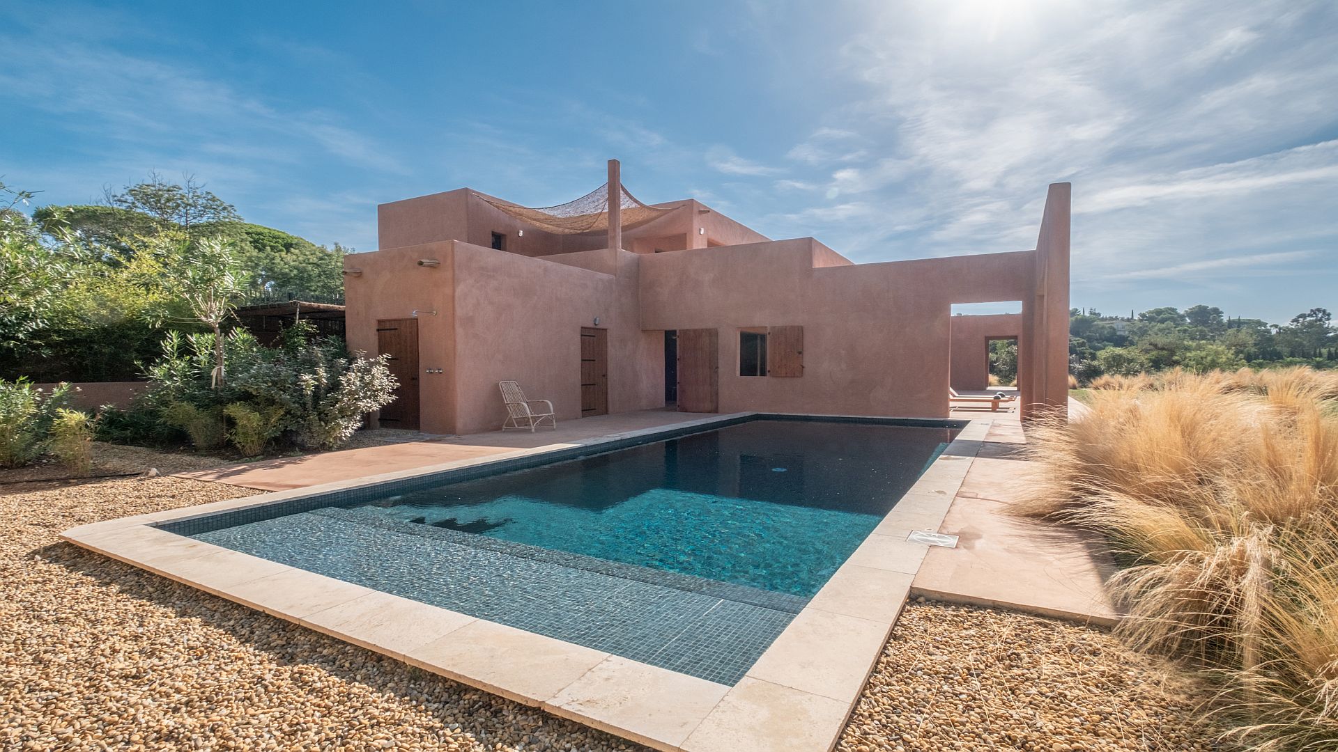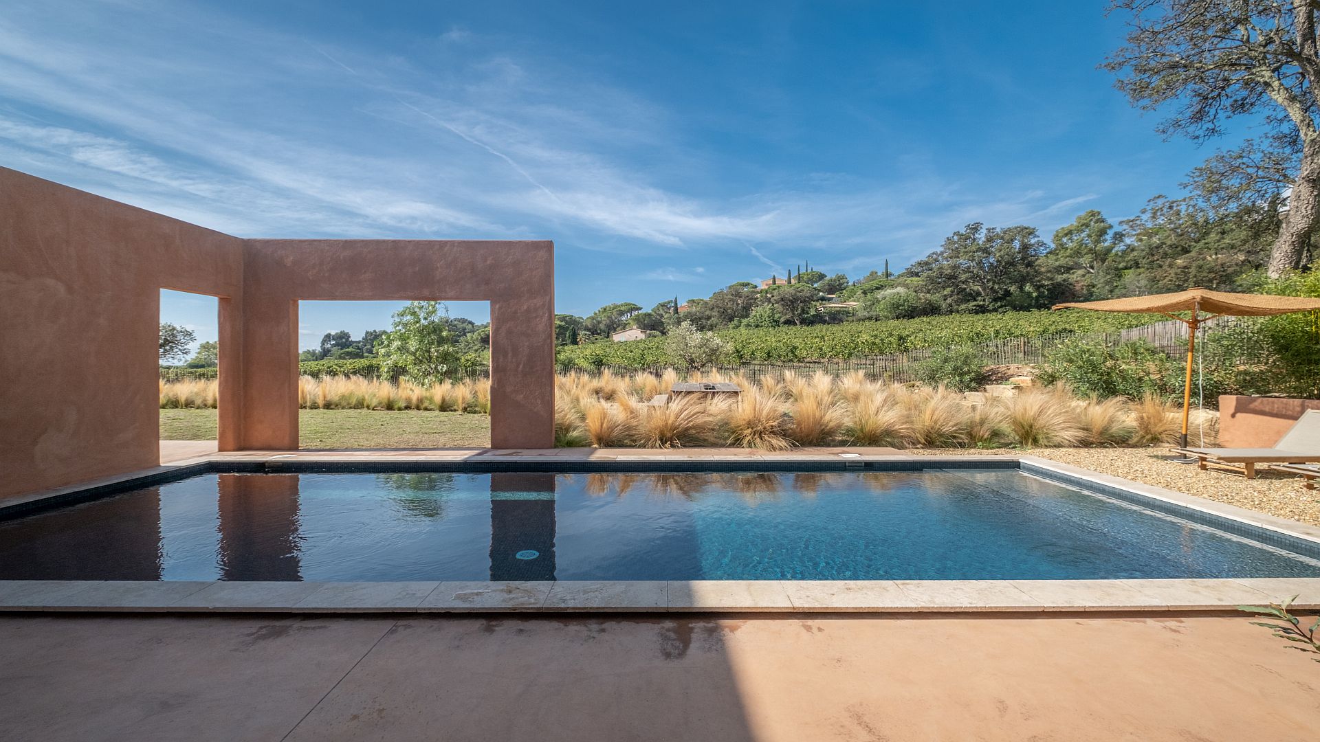 The swimming pool is surrounded by sun loungers, providing the perfect setting to relax and enjoy the landscape.