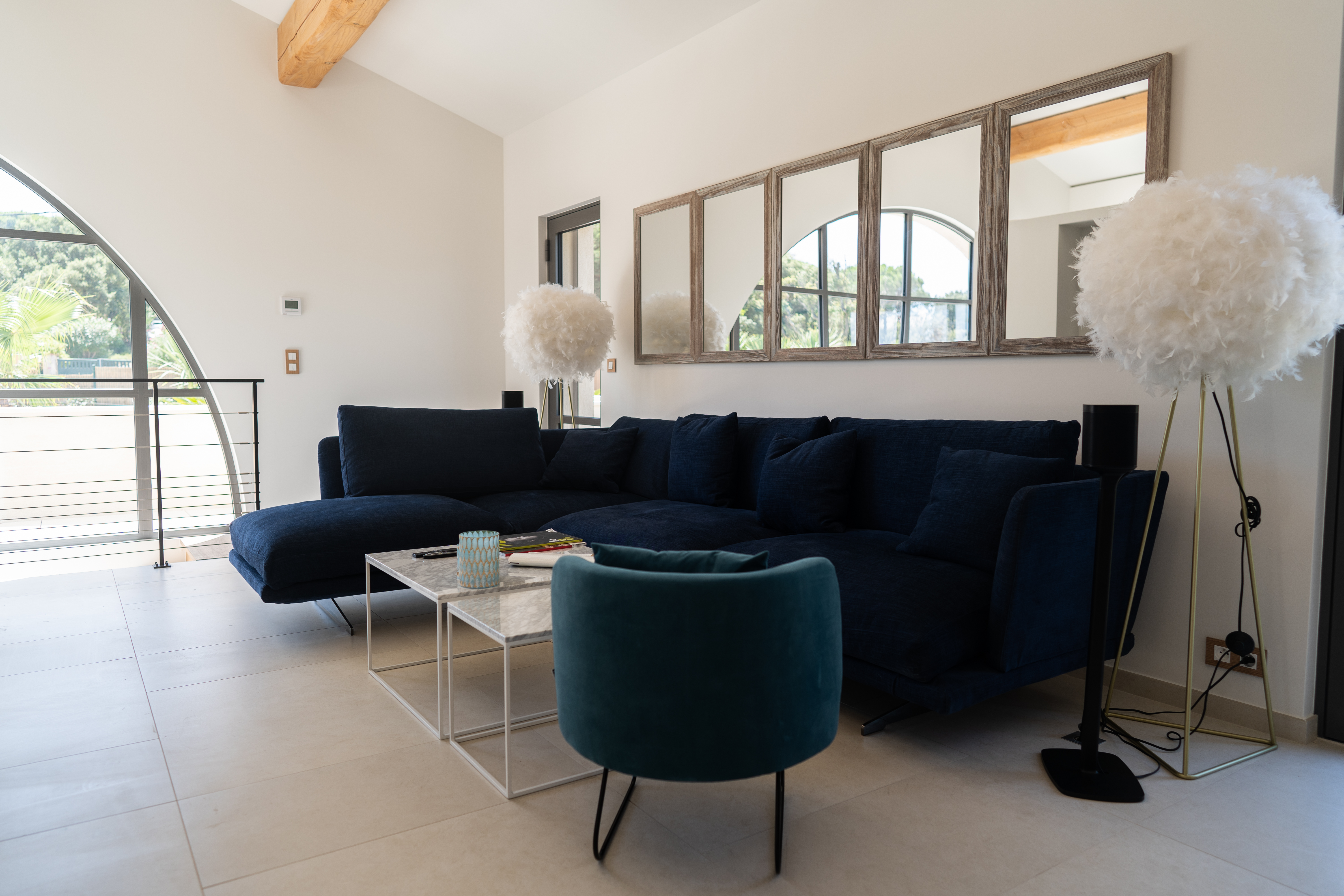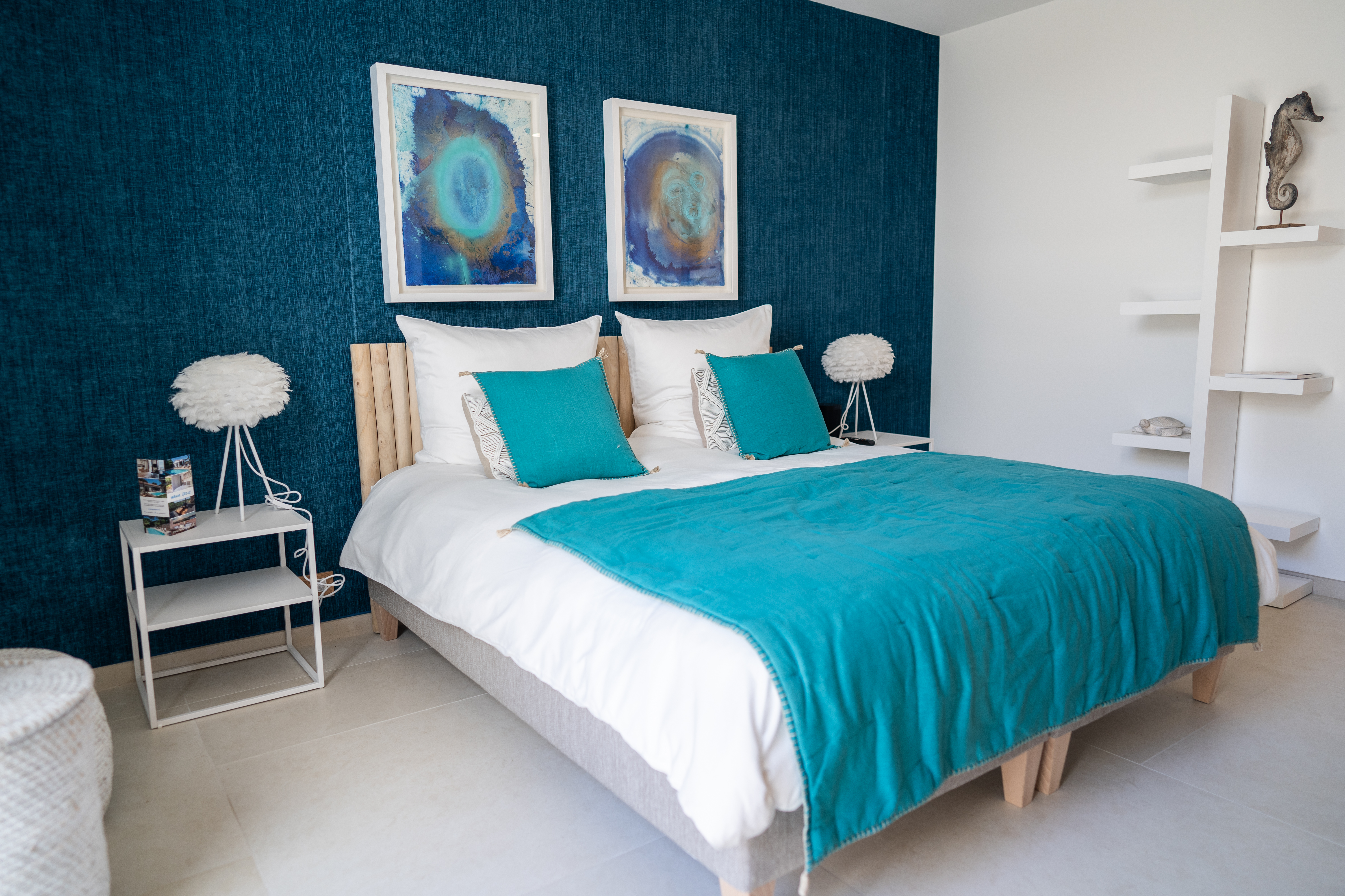 Villa Bellissima was built in 2021 in a natural, seaside-inspired style. The décor, in shades of white, blue, and turquoise, combined with natural wood and driftwood finishes, is a true tribute to nature and the sea.