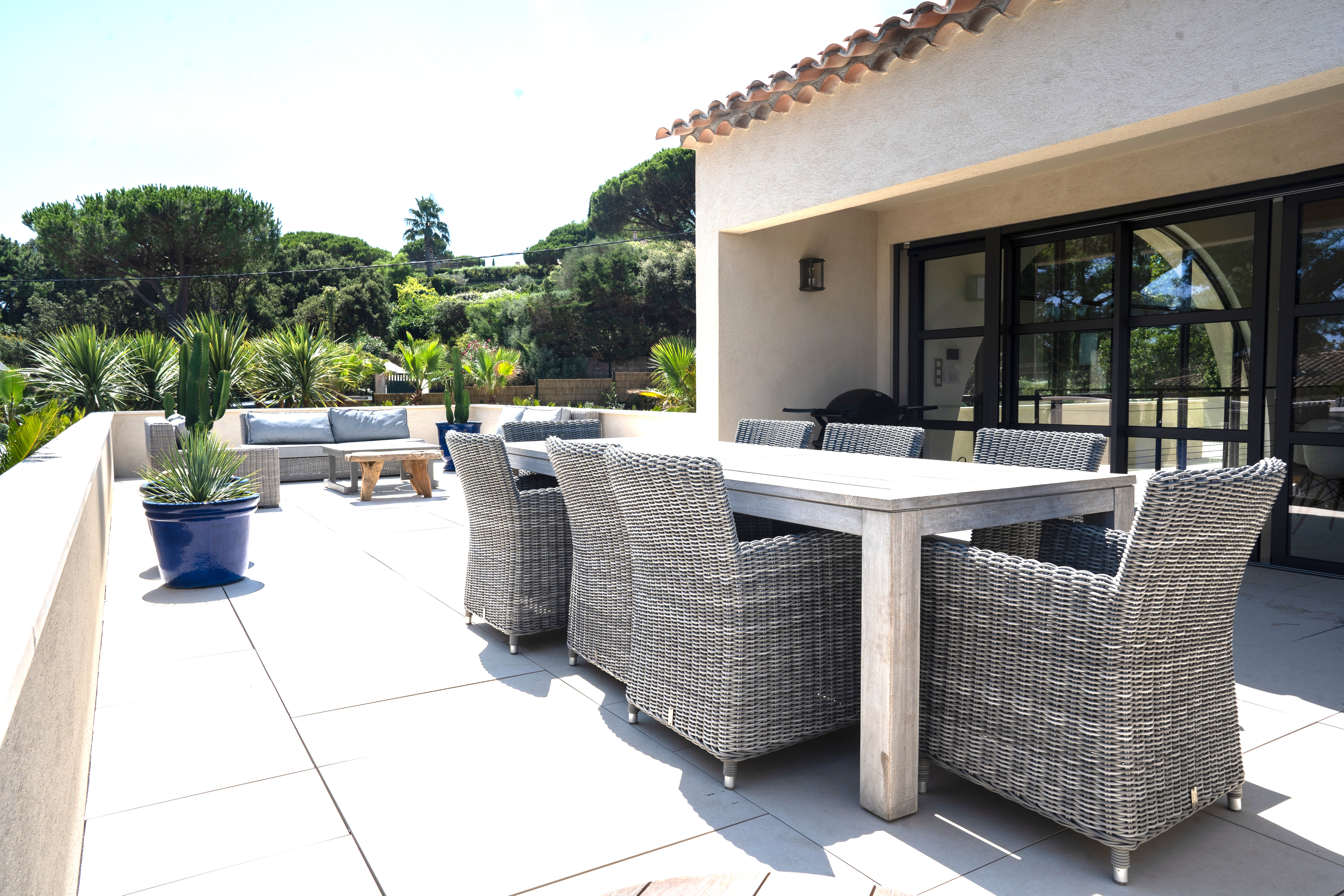 The property is located within a secure residence, just a short walk from Boulevard Patch and Pampelonne Beach in Ramatuelle.